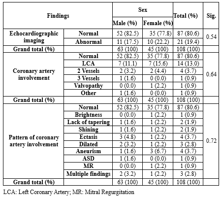 Table 2. Echocardiographic findings of patients with Kawasaki disease based on sex